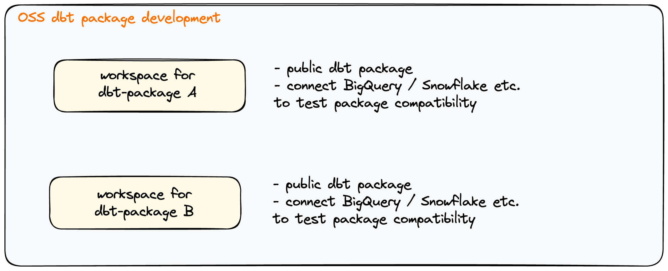 Open source package development: If you are an OSS enthusiast and want to develop open source dbt-packages for the community, you likely have many dbt™* repos. With Paradime Workspaces, each dbt™* package can live inside a workspace. Since workspaces support multiple warehouse connections, developers can test their package against each warehouse before every release. With a unified development environment, package developers will be able to bring even more utility on top of dbt™*.