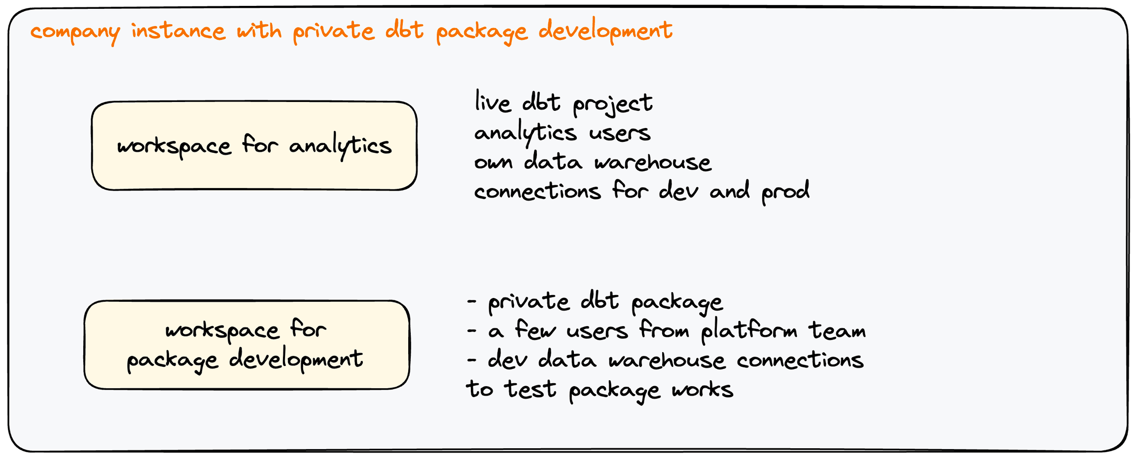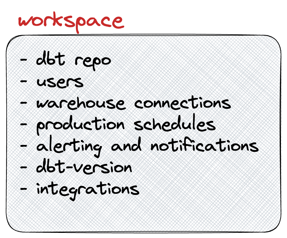 Customers are then able to configure each of their workspaces independently, be it users, dbt-repo and models, production schedules, warehouse connections and integrations.