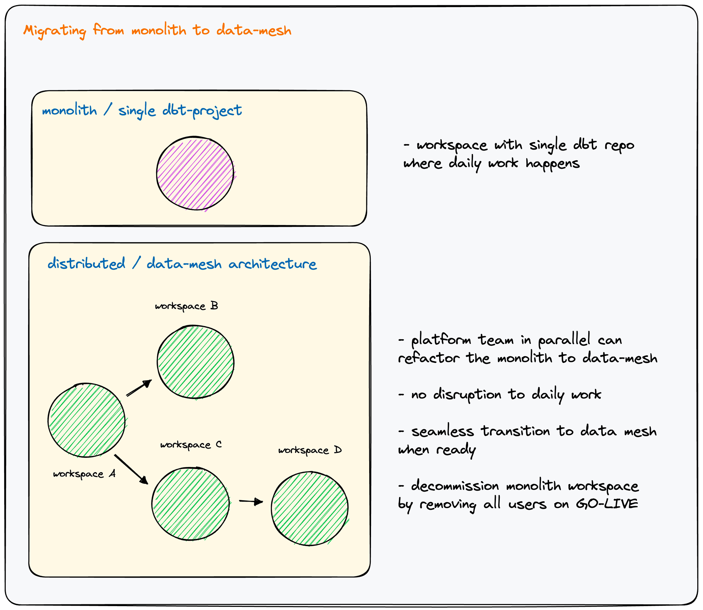 There are a lot of organizations who are now considering moving from a monolith to a data mesh architecture. During the migration process, they want zero impact / downtime for their data analytics teams.
