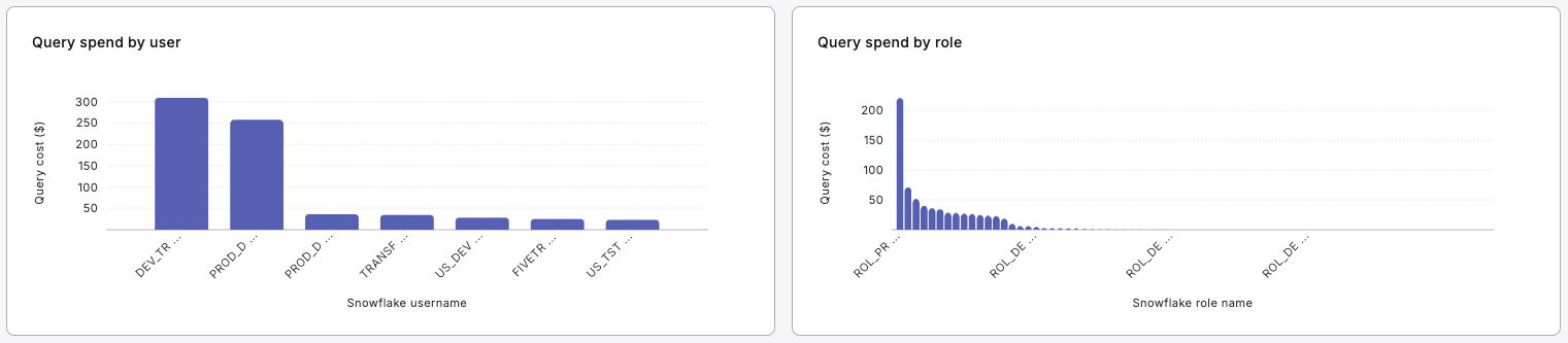**Value**: Analyze query spending by user and role to identify which segments of your organization are driving the most costs.