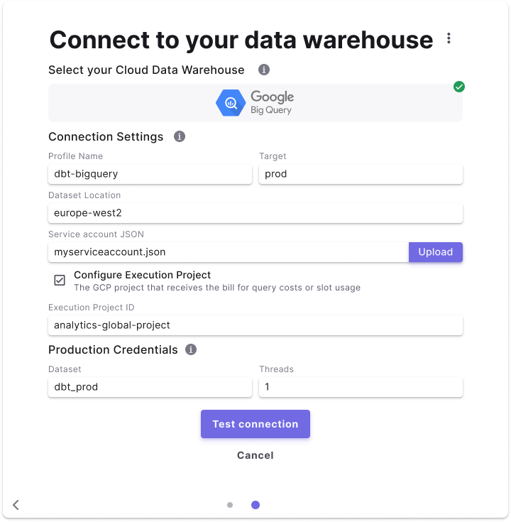 To add the BigQuery Production connection, follow these instructions: